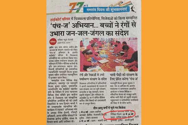 Congratulations to Kumari Ritika Neopane Class VI of Maharishi Vidya Mandir 2, Indore for securing Third Position in the Panch J Abhiyan Painting Competition held at the MP High Court, Indore Bench on 25 January 2026.